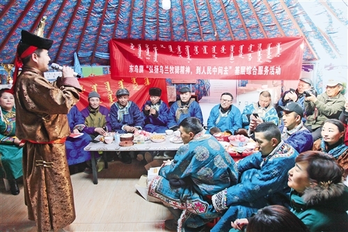 哈斯乌拉是阿拉坦合力苏木党委宣传委员。他说,乌兰牧骑队员2018年来过3次,今年刚开年就又来牧户家里演出,"你看,今天来了不少人呢"。(经济日报·中国经济网记者魏永刚)