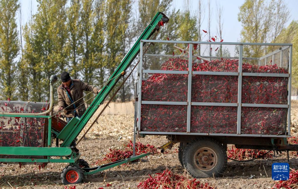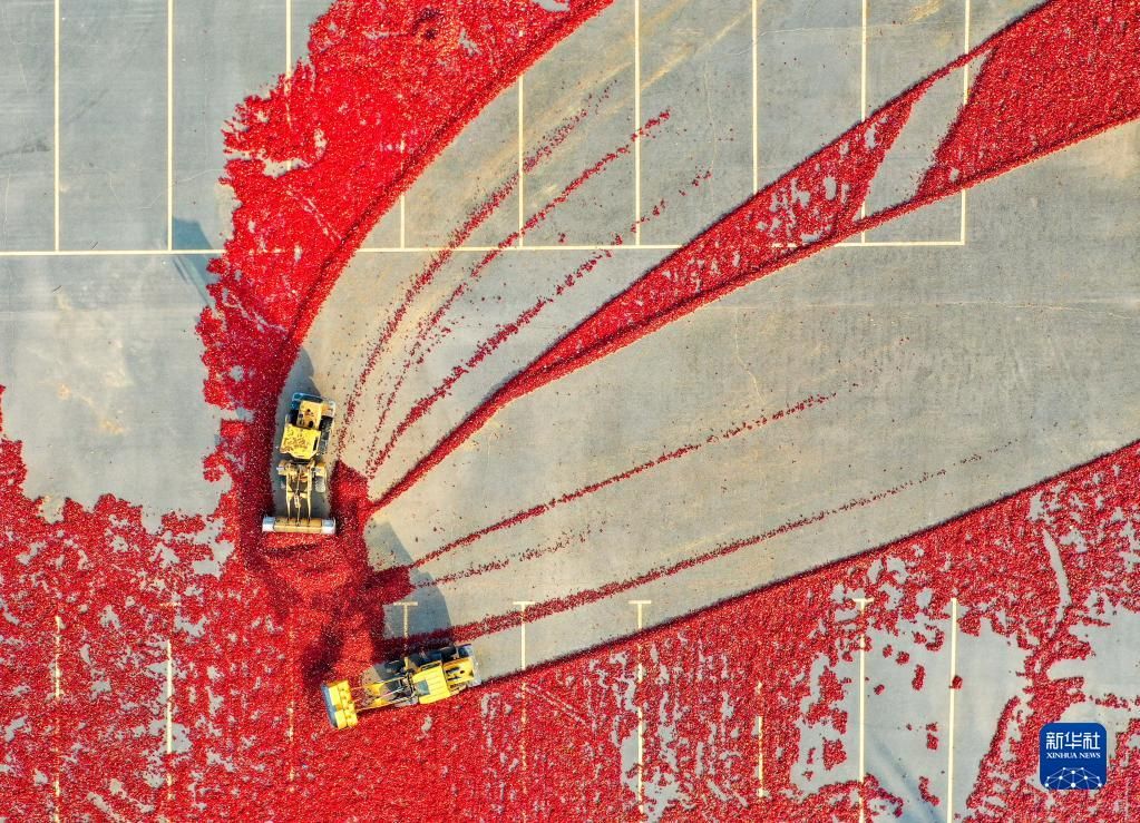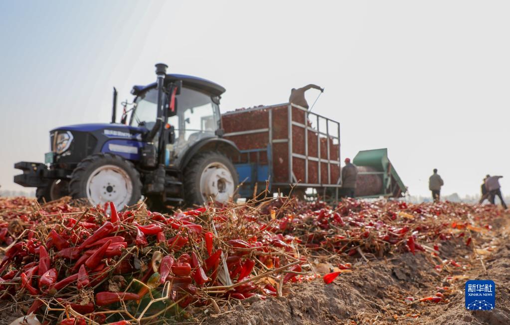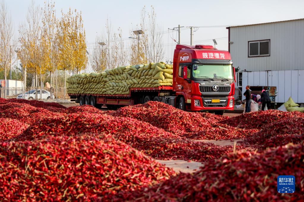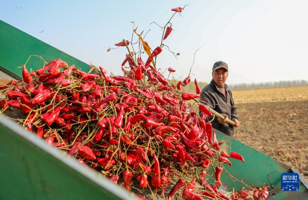 近日,内蒙古通辽市开鲁县迎来红干椒收获销售旺季。开鲁县红干椒皮红肉厚、品质优良,产品畅销国内外市场。近年来,开鲁县红干椒种植面积稳定在60万亩。新华社记者 连振 摄