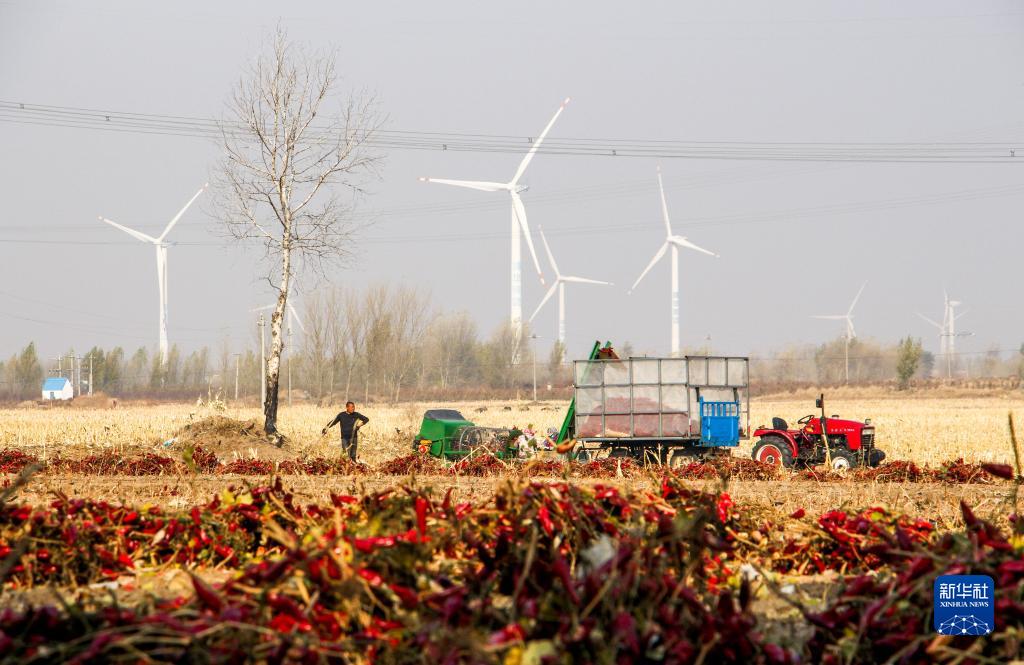 10月25日,在开鲁县东风镇东方红村,村民收获红干椒。新华社记者 连振 摄