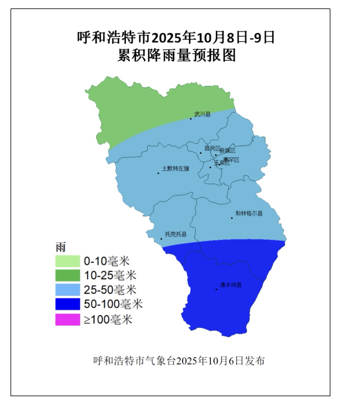 本网讯(草原云·内蒙古新闻网记者 马丽侠)记者10月7日从呼和浩特市气象局了解到,预计10月8~9日,呼和浩特市将出现秋季罕见强降水天气,累积降水量为20~80毫米。本次降水过程雨势较夏季相对平稳,但由于持续时间长、雨量大,城区内涝风险高,且对假日返程和秋收有很大影响,需提前部署相关工作。