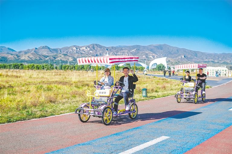 10月7日,游客在呼和浩特市敕勒川草原游玩。国庆中秋8天长假里的内蒙古成为国内旅游市场的“流量高地”。据自治区文化和旅游厅数据显示,假期期间,内蒙古接待国内游客2531.20万人次,同比增长10.28%;实现国内游客总花费176.86亿元,同比增长9.77%。草原云·内蒙古新闻网记者 王磊 摄