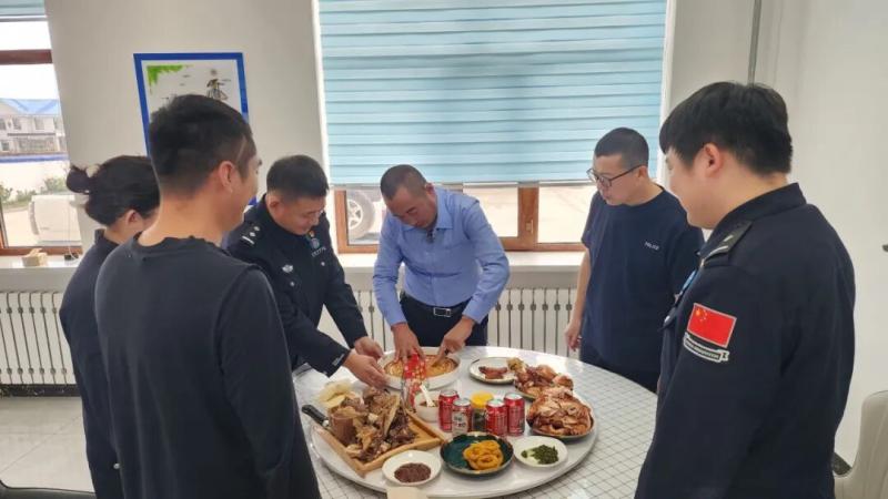 “今年咱们的月饼是五仁的,还是家乡的味道!”民警李明禹端出了月饼,金黄的表面泛着油光。在这阖家团圆的日子里,派出所就是他们的家,战友就是彼此的亲人。一盘热腾腾的饺子,一块香甜的月饼,简简单单,却饱含着浓浓的情谊。这是属于他们的团圆饭,虽然没有亲人围坐,却有着同样真挚的祝福与陪伴。