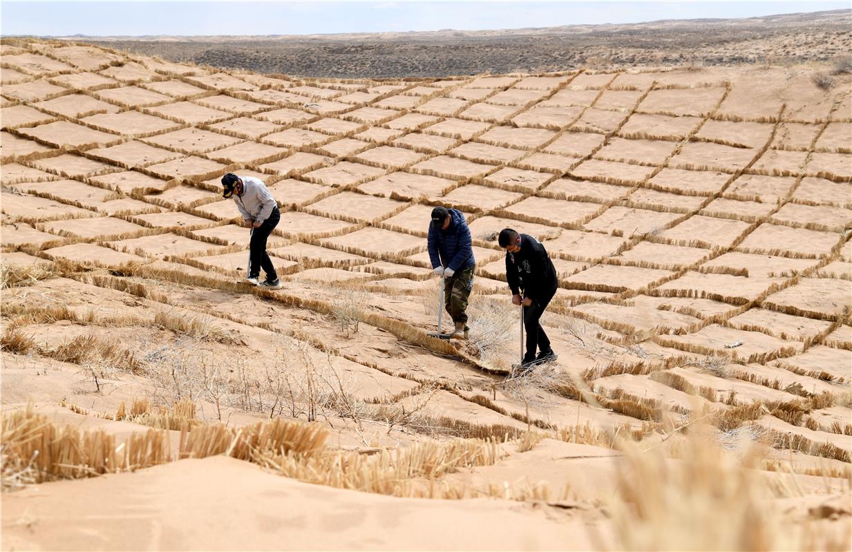 桑根达来镇额日登达来嘎查“蒙冀界”浑善达克沙地综合治理区位于该嘎查夏营盘,区域内实施锡林郭勒盟“蒙冀界”浑善达克沙地综合治理项目封沙育草1.47万亩,工程固沙7300亩,按照沙地的实地性状,采取黄柳网格生物沙障、灌木柳机械沙障、苇帘带状沙障、黄柳带状生物沙障、草帘网格状复合沙障等多种模式,对封育区内的流动、半固定沙地实施工程固沙。