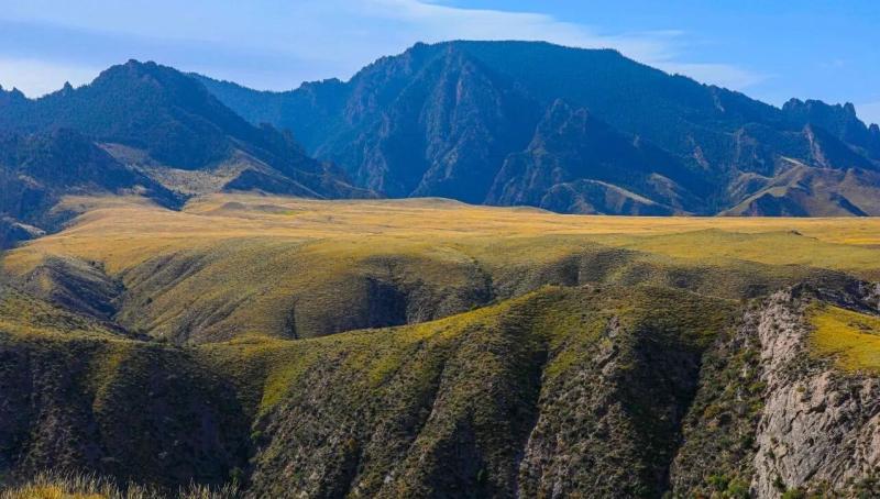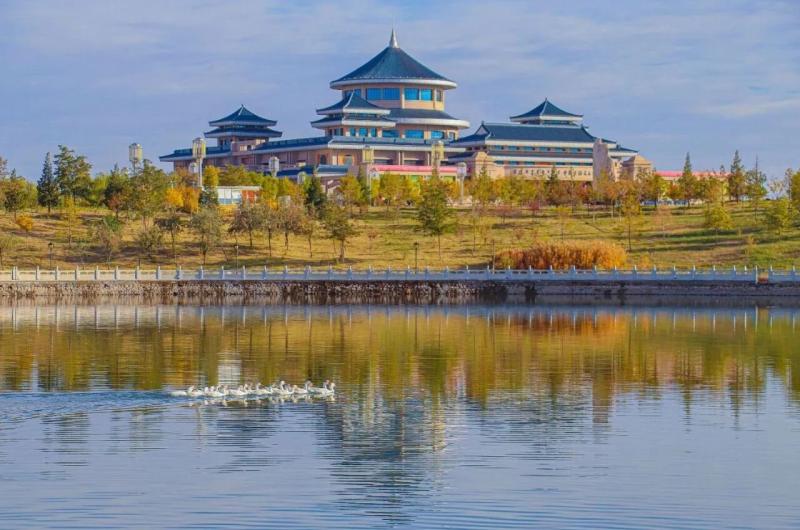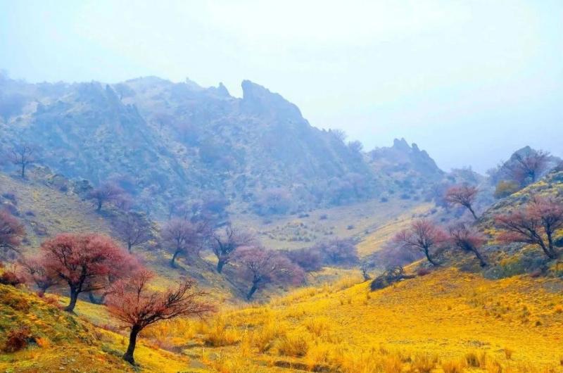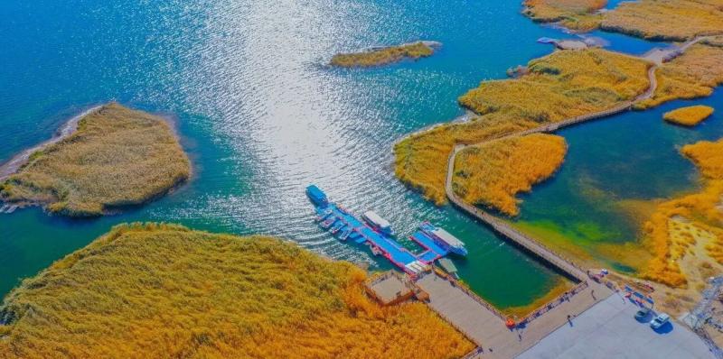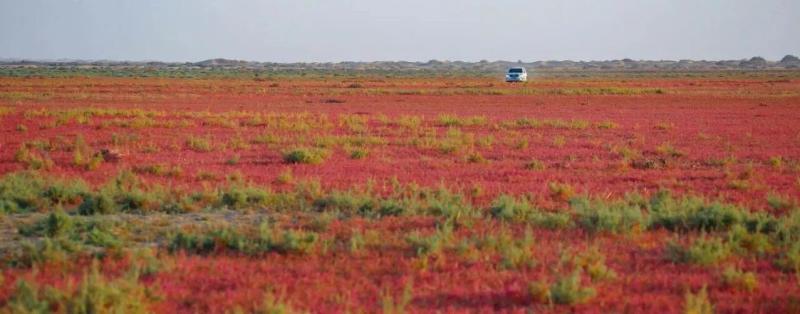 秋风拂过广袤大地,草原褪去青翠,换上金红交织的华服。风掠过胡杨林,叶片沙沙作响,仿佛在诉说古老的故事。居延海碧蓝的湖水像一块巨大的宝石,镶嵌在无垠的沙漠与戈壁中;芦苇荡在风中摇曳,泛着毛茸茸的光泽;成群的水鸟掠过水面,划破天空的寂静。贺兰山的山峦之间,常青的松柏点缀着苍翠,漫山的灌木与不知名的树木,染上了深红、赭石、明黄与橙红,层层叠叠交织在一起,在秋日斜阳的照射下,温暖而辉煌。