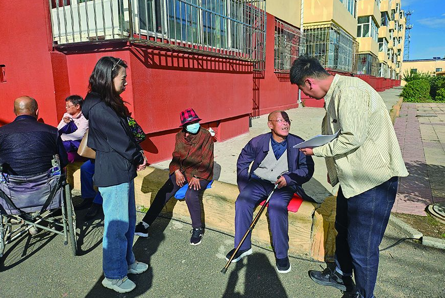 社区工作人员宣传高龄津贴政策 徐楠 摄