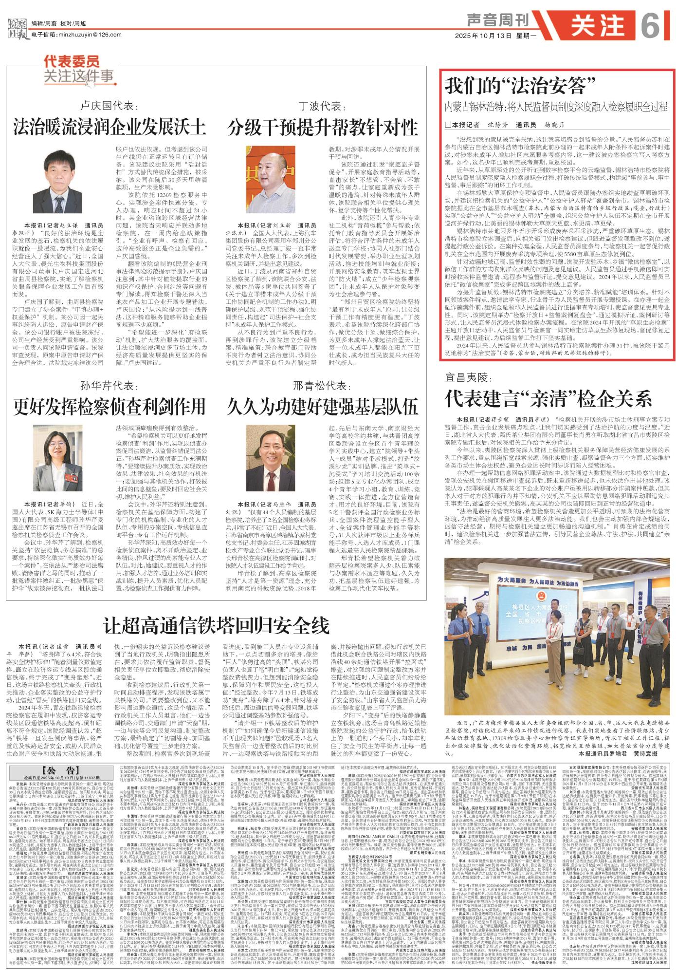 2025年10月13日,《检察日报》第6版刊发题为《我们的“法治安答”内蒙古锡林浩特:将人民监督员制度深度融入检察履职全过程》的文章,报道了近年来,锡林浩特市检察院将人民监督员制度深度融入检察履职全过程,打破传统监督模式,构建起“事前参与、事中监督、事后跟踪”的闭环工作机制。