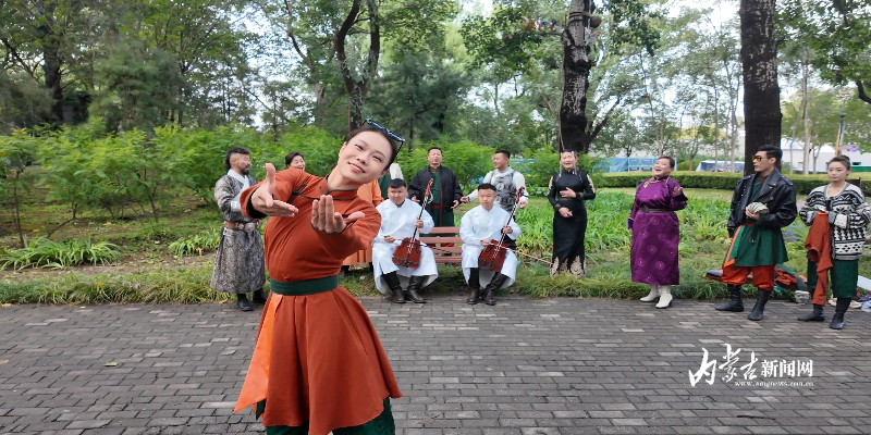 以天为幕、以地为台。乌兰牧骑演员即兴表演了一个又一个充满民族特色又兼具时代气息的文艺节目,博得了观众们阵阵掌声,将清晨的朝阳公园变成歌舞的海洋。
