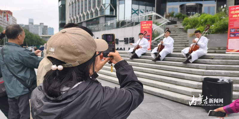 10月11日上午,乌兰牧骑的表演又出现在了繁华的三里屯商区。一大早,穿着演出服、背着马头琴的演员们,骑着共享单车来到三里屯,席地而坐便拉起了马头琴。悠扬的歌声,曼妙的舞步,使商业街上南来北往的人流,瞬间如溪流般汇集到一起。