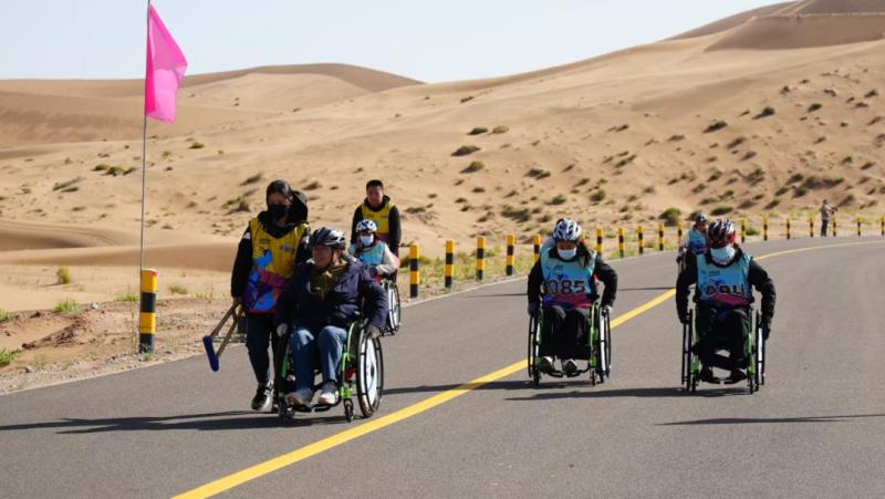 据了解,本次赛事设置兼顾竞技性与参与性,包括沙漠公路轮椅10公里越野挑战赛、残疾人沙漠马拉松赛,以及沙地拔河赛、4x100米接力赛、轮椅100米竞速赛、盲推轮椅100米障碍赛等,还创新性增设无人机航拍摄影比赛和残疾人佩戴无障碍智能眼镜体验、驼疗体验、滑沙体验、沙漠寻宝趣味活动,为残疾人运动员提供了多元展示舞台。