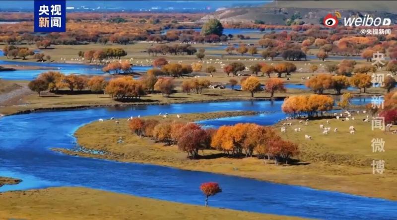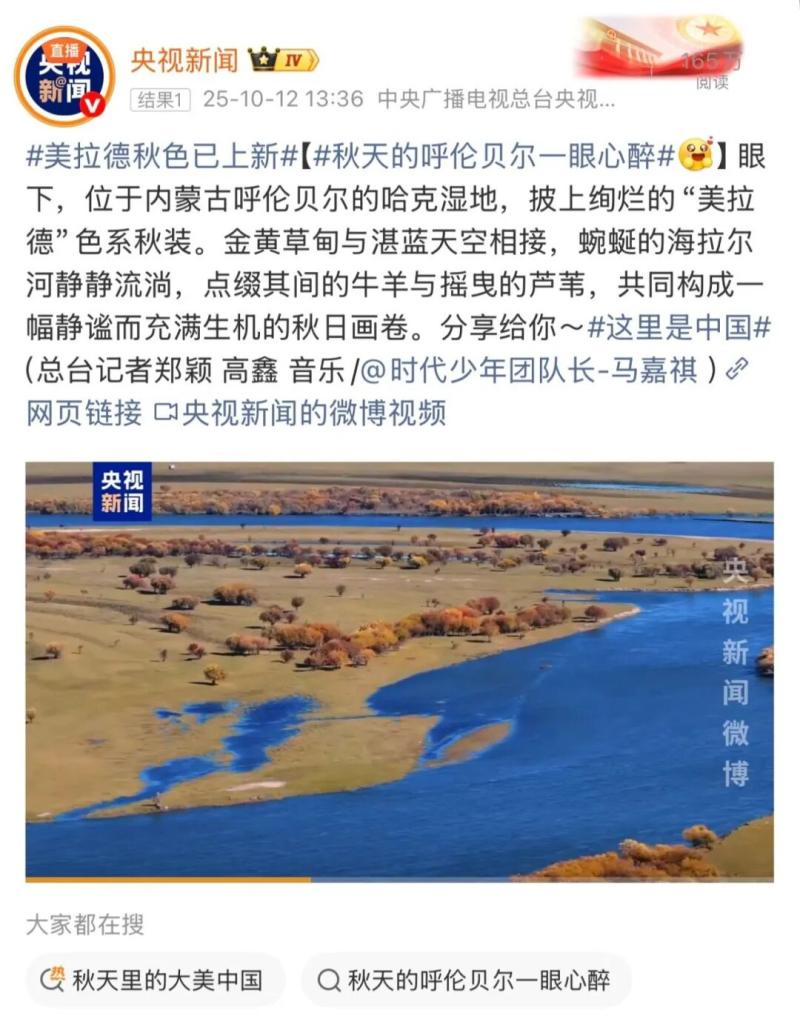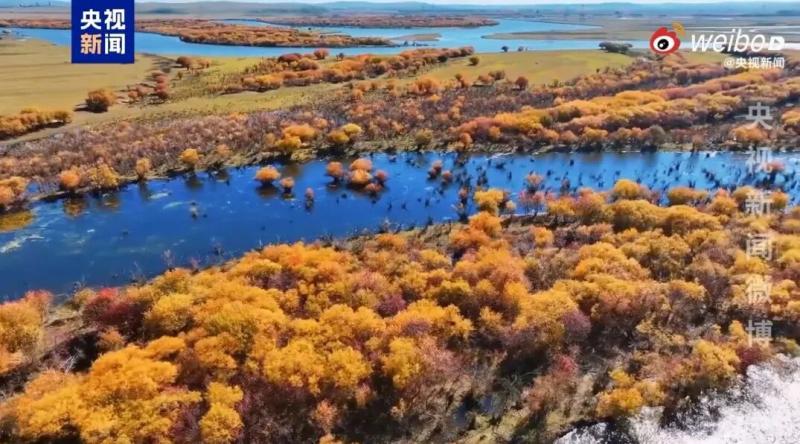 近日,央视新闻微博以#美拉德秋色已上新#为话题,发布短视频报道《秋天的呼伦贝尔一眼心醉》,聚焦呼伦贝尔市哈克湿地的秋日胜景。这条全长57秒的航拍视频,瞬间点燃全网对北疆秋色的向往。