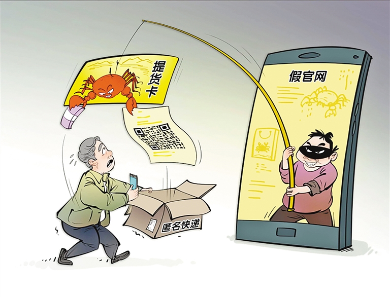 又到了吃蟹季,赏秋吃螃蟹是一件乐事,却也成了提货卡诈骗“傍”上的新噱头。近来,不少人收到天降“蟹礼”,多为需扫码、预约提货的卡片,警方提示您:天上不会掉馅饼,更不会掉大闸蟹。新华社发 曹一 作