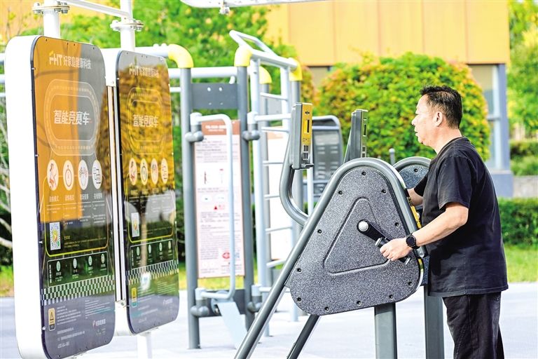 10月13日,市民在公园的室外智能健身场地,使用智能竞赛健身车锻炼。近年来,呼和浩特市在公园和广场增设了大量新型数字智能体育设施,既满足各年龄段群众的锻炼需求,也有效提升了群众的生活品质,市民通过这些智能设备解锁科学健身新方式,在畅享运动乐趣的同时,感受数字科技带来的便捷。草原云·内蒙古新闻网记者 王晓博 摄