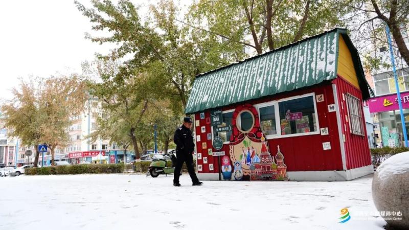 清晨推开窗时,世界忽然换了模样。昨日还带着秋末余温的街道,此刻被一层薄雪轻轻裹住,连平日里嘈杂的车流声,都像被雪絮滤过般柔和下来--这是边城今年的初雪。