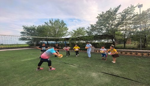 初秋清晨,第一缕阳光掠过毛乌素沙地边缘,鄂托克前旗昂素镇巴彦呼日呼嘎查的草原排球场上已是一派火热:大人垫球、扣杀,一招一式有板有眼;孩子追逐、跳跃,笑声随草浪起伏。14天“草原村排”文明实践夏令营,把排球网织成文明网,把欢笑声汇成振兴曲,更把党的创新理论送到牧民心坎上。