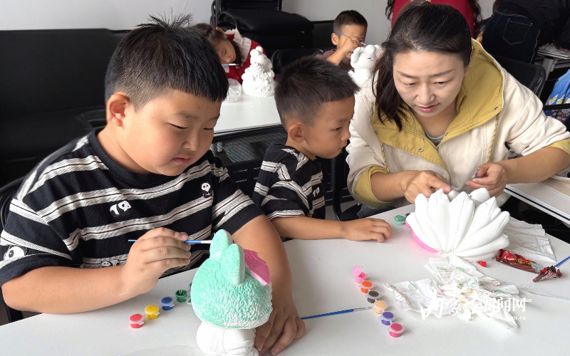 本网讯(草原云·内蒙古新闻网首席记者 王树天) 10月18日,呼和浩特市新城区东苑社区活动中心内洋溢着欢声笑语,一场名为“小蒲娃的七彩梦”的石膏娃娃涂色活动温馨上演。活动吸引了30组3~6岁的儿童家庭参与,旨在丰富社区儿童文化生活,关爱未成年人健康成长。