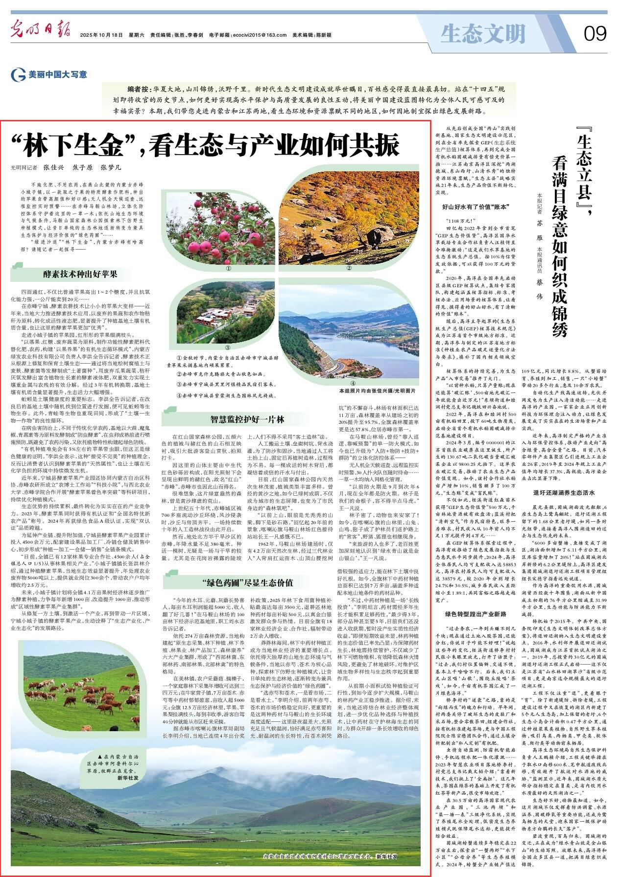 不施化肥、不用农药,在燕山北麓的内蒙古赤峰小城子镇,以一款取之于果的特质酵素作肥料,种出的苹果自带高颜值和好口感;无人机全天候巡查、远程监控实时预警……在赤峰马鞍山林场,立体化防控体系守护着这里的一草一木;依托山地生态环境与气候条件,马鞍山国家森林公园探索林下仿野生种植模式,让昔日单纯的生态林地逐渐转变为兼具生态保护与经济价值的“绿色药圃”……