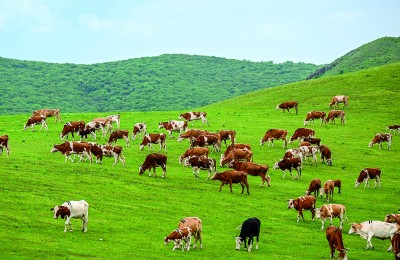 在内蒙古自治区赤峰市阿鲁科尔沁草原,牧群正在觅食。新华社发