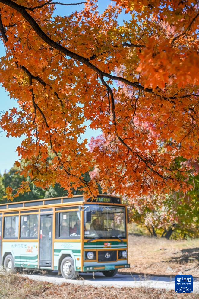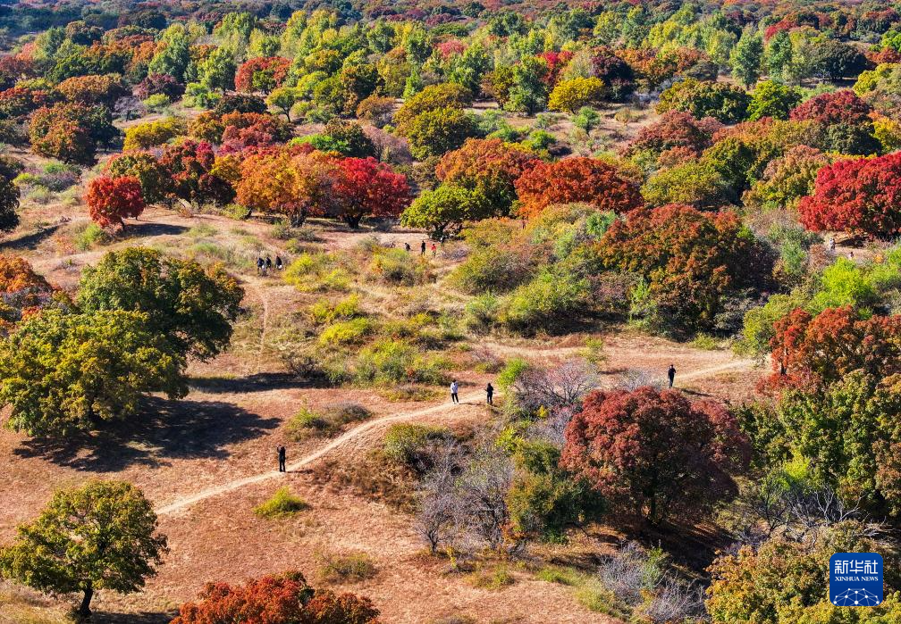 10月18日,游人在乌旦塔拉五角枫森林公园游览。