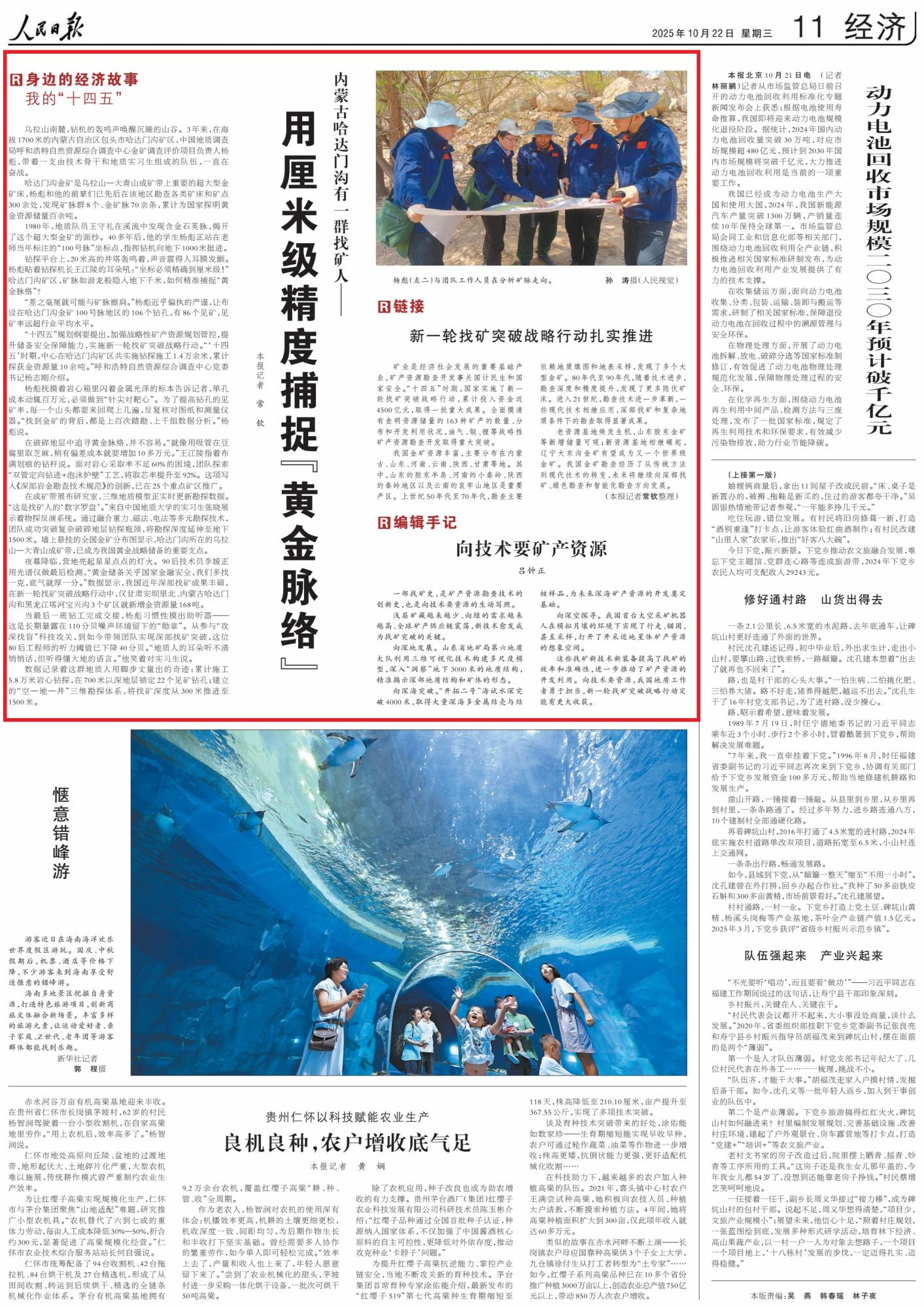 老资源基地焕发生机,山东胶东金矿等新增储量可观;新资源基地相继崛起,辽宁大东沟金矿有望成为又一个世界级金矿。我国金矿勘查经历了从传统方法到现代技术的转变,未来将继续向深部找矿、绿色勘查和智能化勘查方向发展。(记者常钦整理)