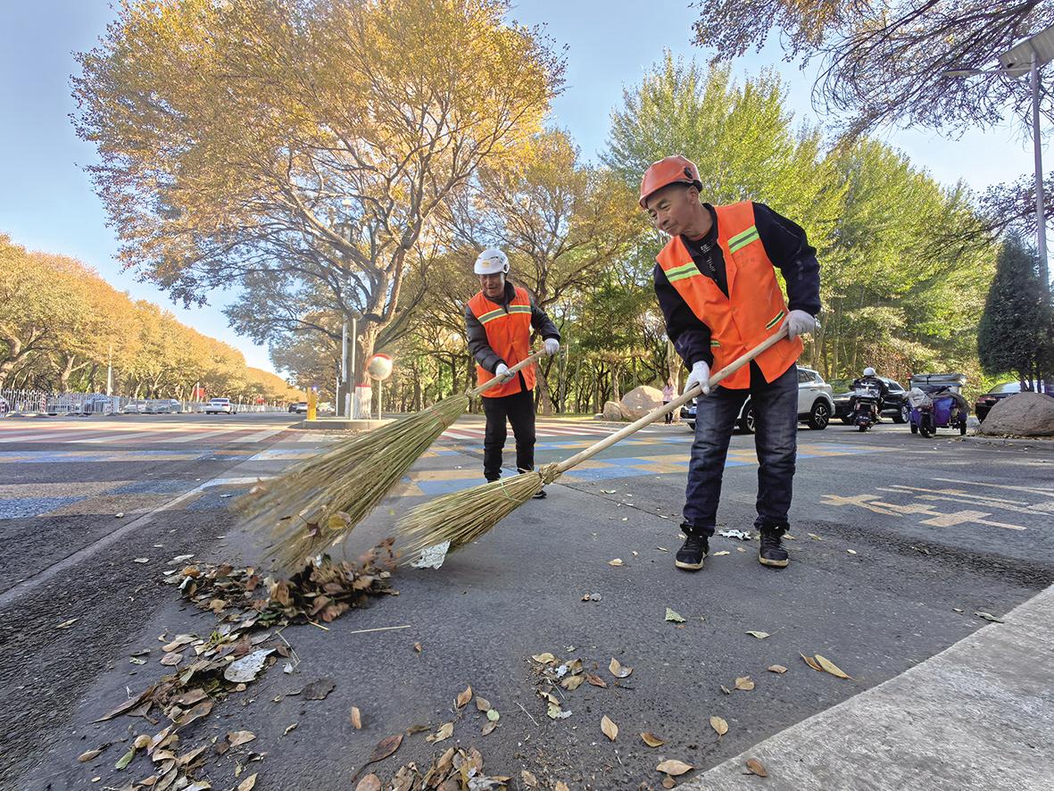 斑斓的城市美景中,苏尚武和同事明艳的橙色环卫服,在金秋的炫彩中猛然间变成了最亮眼的那抹颜色。