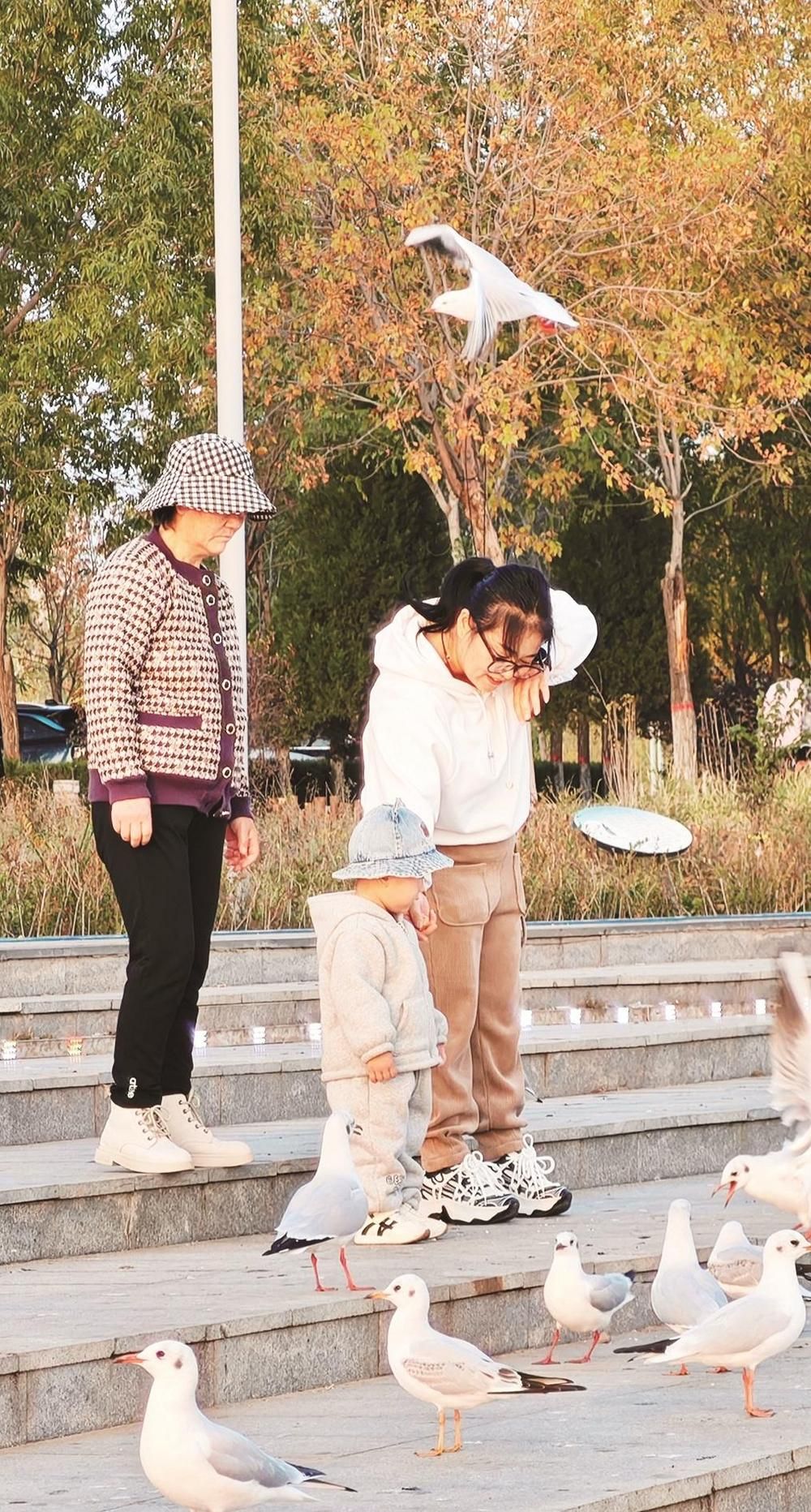 红嘴鸥的停留,是它们对乌海湖最深情的表白。因为这里是精灵们每年北归、南迁的重要“中转站”。它们在湖面上嬉戏,与游人“交流”。从阿拉善盟专程来乌海湖观鸟的游客许嘉露说:“本来春天就想过来看红嘴鸥却没来成,所以等秋天它们飞回来的时候,我就早早计划好,准时来乌海看看这些鸟。它们也不害怕人,偶尔还跟人有互动,我感觉这就是人与自然和谐相处吧。”