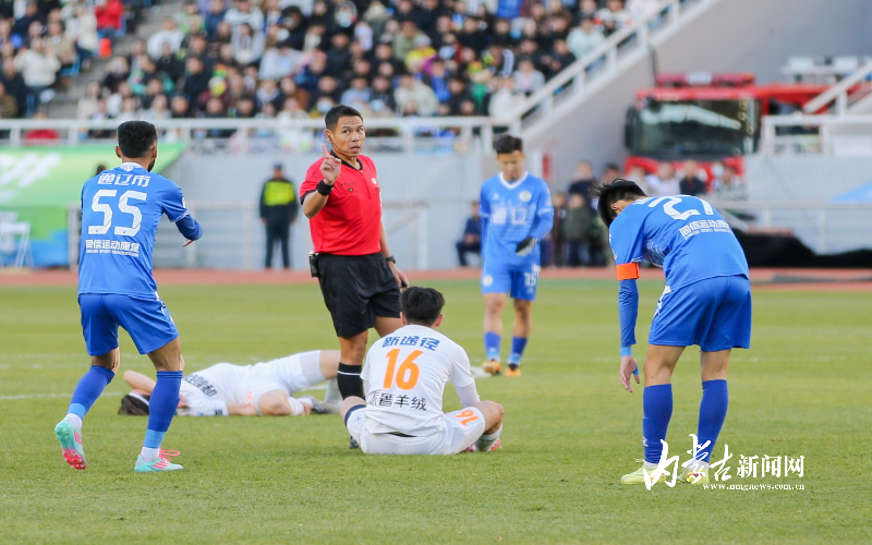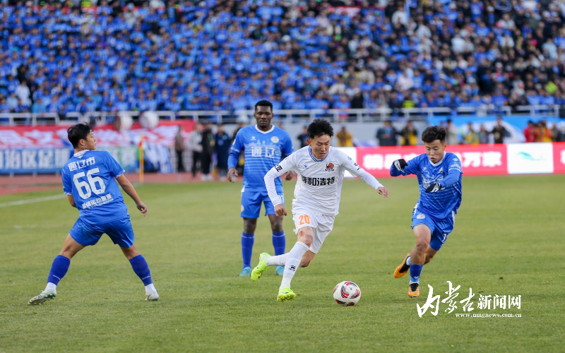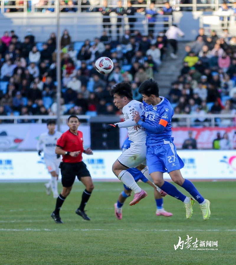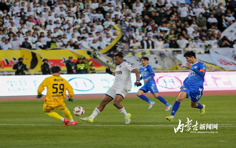 一路走来,呼和浩特队以凶悍的进攻杀出重围,通辽队则以固若金汤的防守一次次让对手破防。第二回合较量成为“最利之矛”与“最强之盾”之间的比拼。比赛开场,万众瞩目的高压下,对阵双方都表现得有些紧张,传球和停球失误频频出现。比赛第11分钟,通辽队外援利用呼和浩特队后卫失误打入一球,但因犯规在先进球无效。随后,通辽队在防守反击和定位球处理上表现渐入佳境。比赛第20分钟,通辽队获得前场位置极佳的定位球机会,门前乱战中险些破门。此后,呼和浩特队不断寻找进攻机会。上半场补时阶段,通辽队外援因为犯规两黄变一红被罚离场,通辽队失去进攻主力,双方战成0:0。