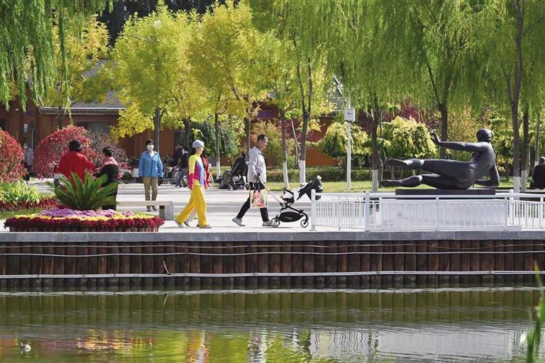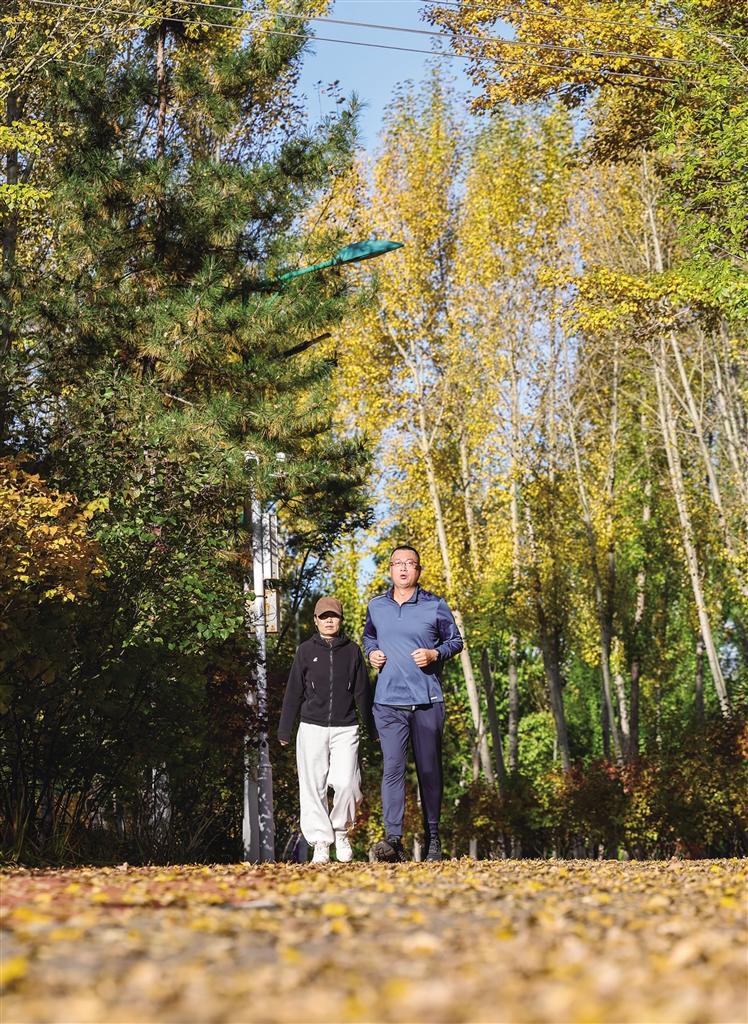 金秋十月,在澄澈的蓝天下,呼和浩特迎来一年中最绚烂多彩的季节。城市各处层林尽染,秋意正浓。在敕勒川草原上,金黄的草甸、硕大的草卷在阳光下光影交织,构成一幅辽阔而温暖的天然油画。公园里,杨柳金黄耀眼,枫树、火炬树等彩叶树种纷纷披上红妆,与常绿植物相互映衬。蜿蜒的步道上铺满落叶,宛如金色地毯;清澈的湖水倒映着蓝天与斑斓树影,形成一幅宁静醉人的城市水彩画,吸引不少市民前来休闲漫步、拍照打卡。(王劭凯)