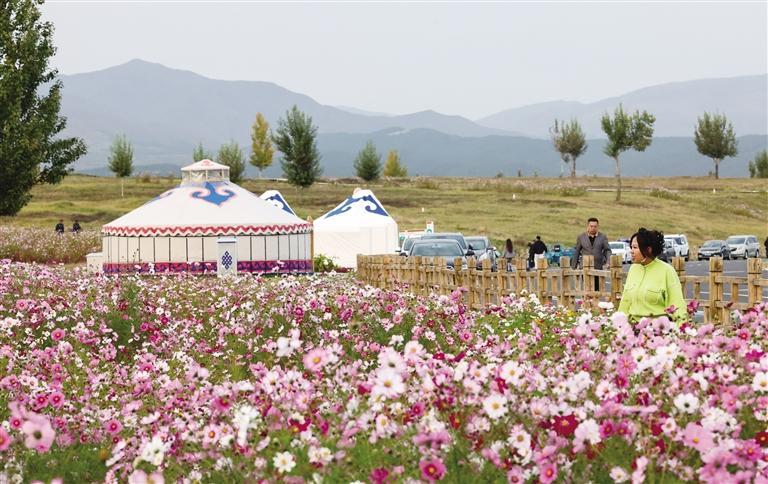 敕勒川国际会展中心周边盛开的格桑花为秋日添彩