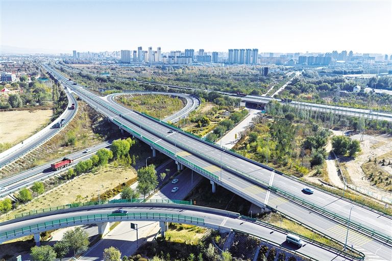10月27日,呼和浩特市北出城口处,G6京藏高速与G110、G209国道纵横交错,构成一幅壮丽图景。截至2024年底,内蒙古综合交通网络总里程达23.8万公里,较2020年底新增1.27万公里,其中高速公路总里程突破8238公里。全区103个旗县(市、区)中,已有80个通达高速,实现了高速公路东西贯通、盟市互联。草原云·内蒙古新闻网记者 怀特乌勒斯 摄