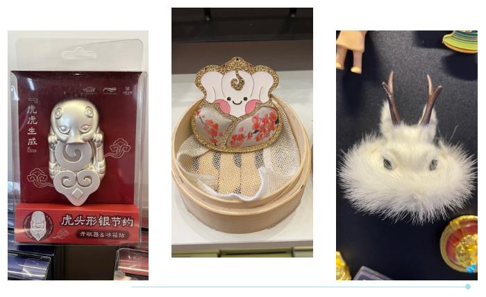 在文创店的货架上,一鹿生花(鹿首金步摇)金属冰箱贴依旧是当之无愧的“人气王”。其复刻了古代金银器的华丽造型,“鹿”元素蕴含的吉祥寓意让它备受青睐,工作人员刚补完货便迅速被抢购一空。“这款是我们的常青款,很多市民会反复回购送朋友,更是游客必入清单的榜首。”店员一边整理货架一边介绍。