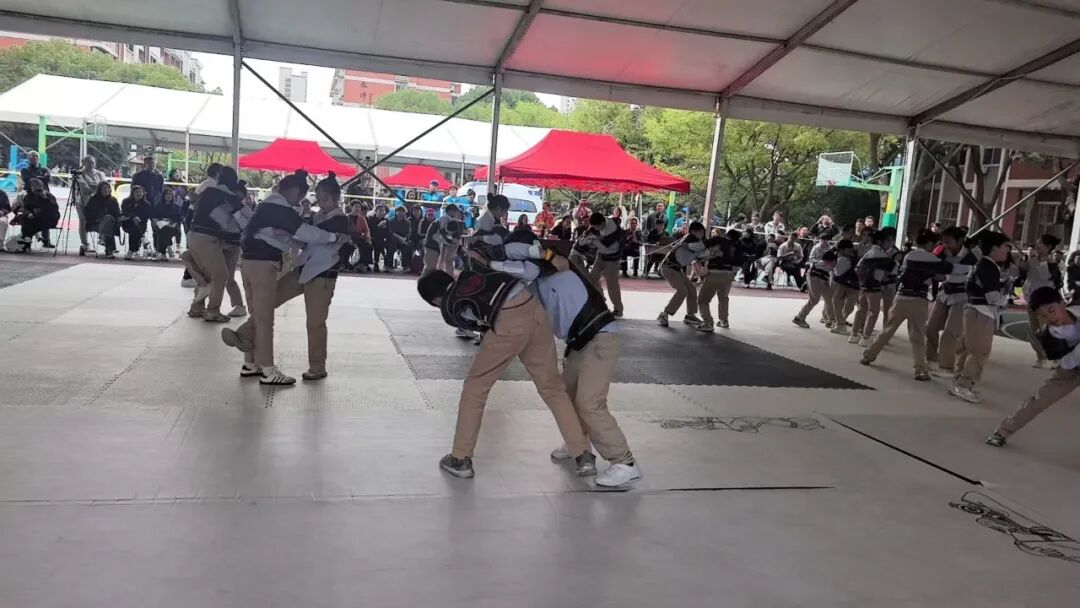 展示课上,朝鲁孟图亚老师创新“小组热身赛-小组淘汰赛-总决赛”三阶教学模式。学生身着传统搏克服饰,在模拟实战中学动作,教师融入“敢拼敢赢、尊重对手”的搏克精神,实现体魄锻炼与文化自信培育的双重目标,吸引百余名参会教师观摩点赞。