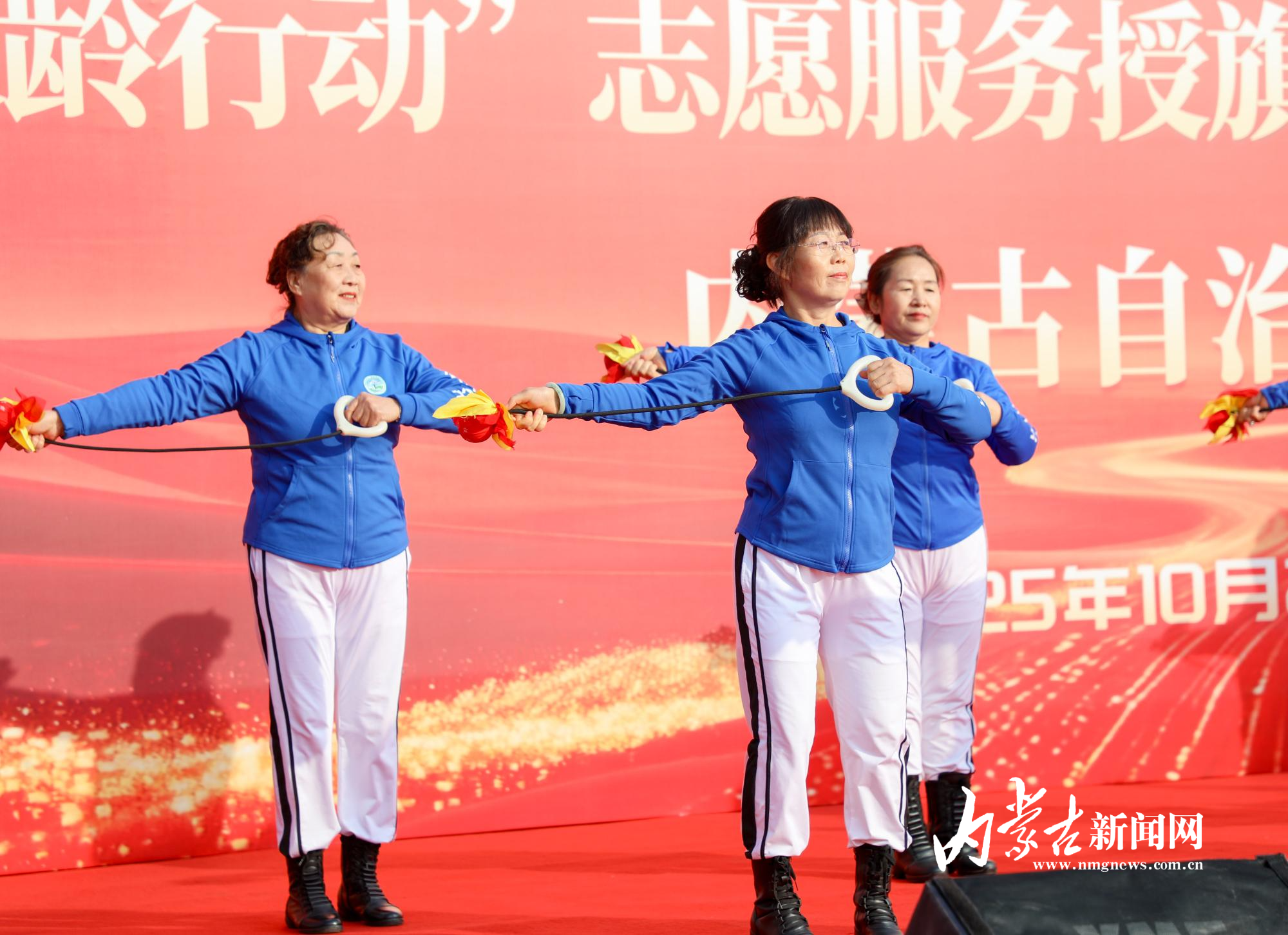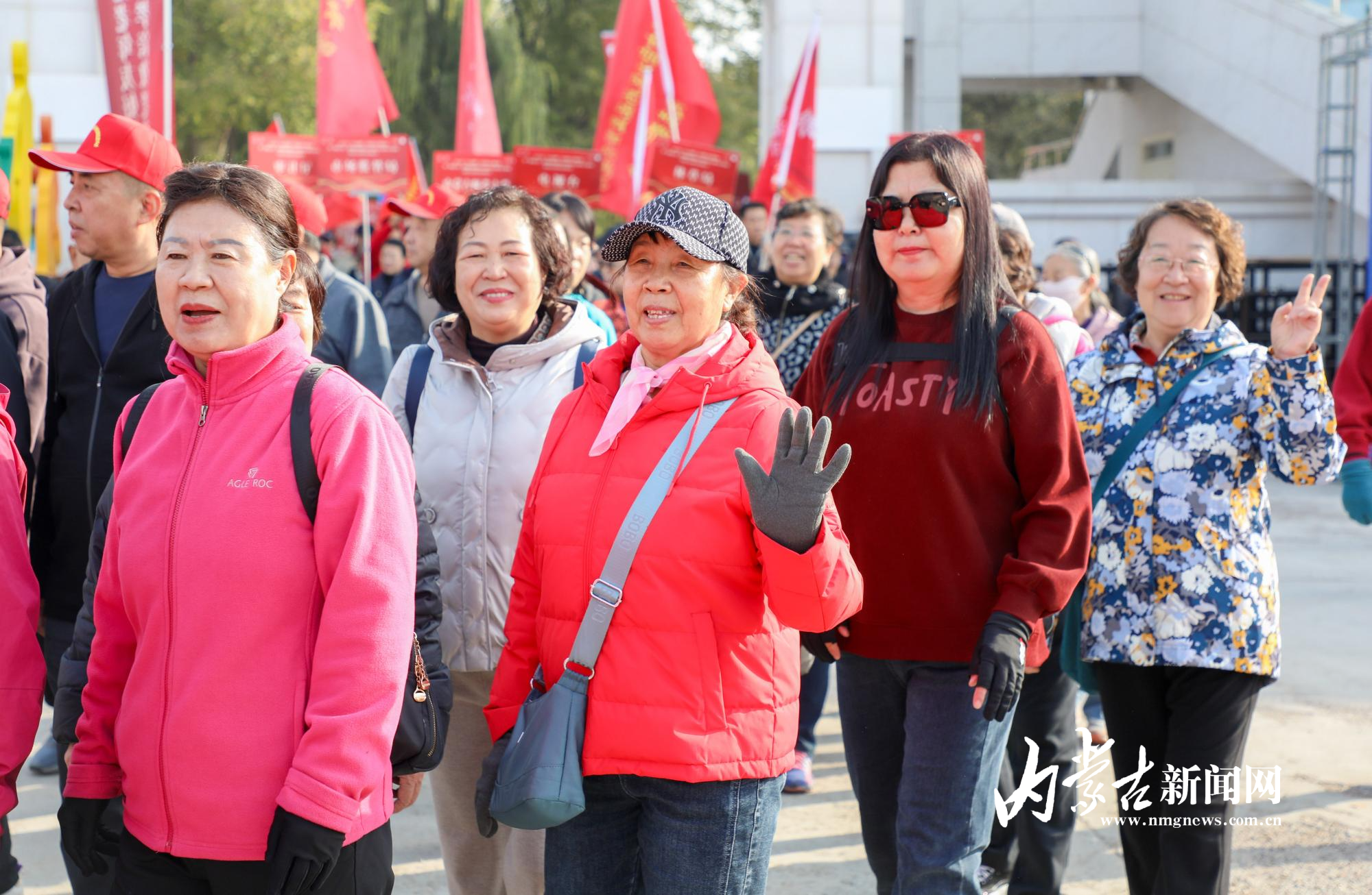 活动旨在进一步丰富老年人精神文化生活,营造尊老、爱老、助老的社会氛围。启动仪式上,内蒙古自治区直属机关老年人文体协会、呼和浩特市老年人体育协会、呼和浩特铁路局老年人体育协会被授予“银龄行动”志愿服务队旗帜,标志着银龄志愿服务力量的进一步凝聚与壮大。随后,现场的老年朋友和干部职工参加了全程约1.6公里的健身徒步活动,大家在秋日暖阳中迈开步伐,展现积极向上的精神活力。