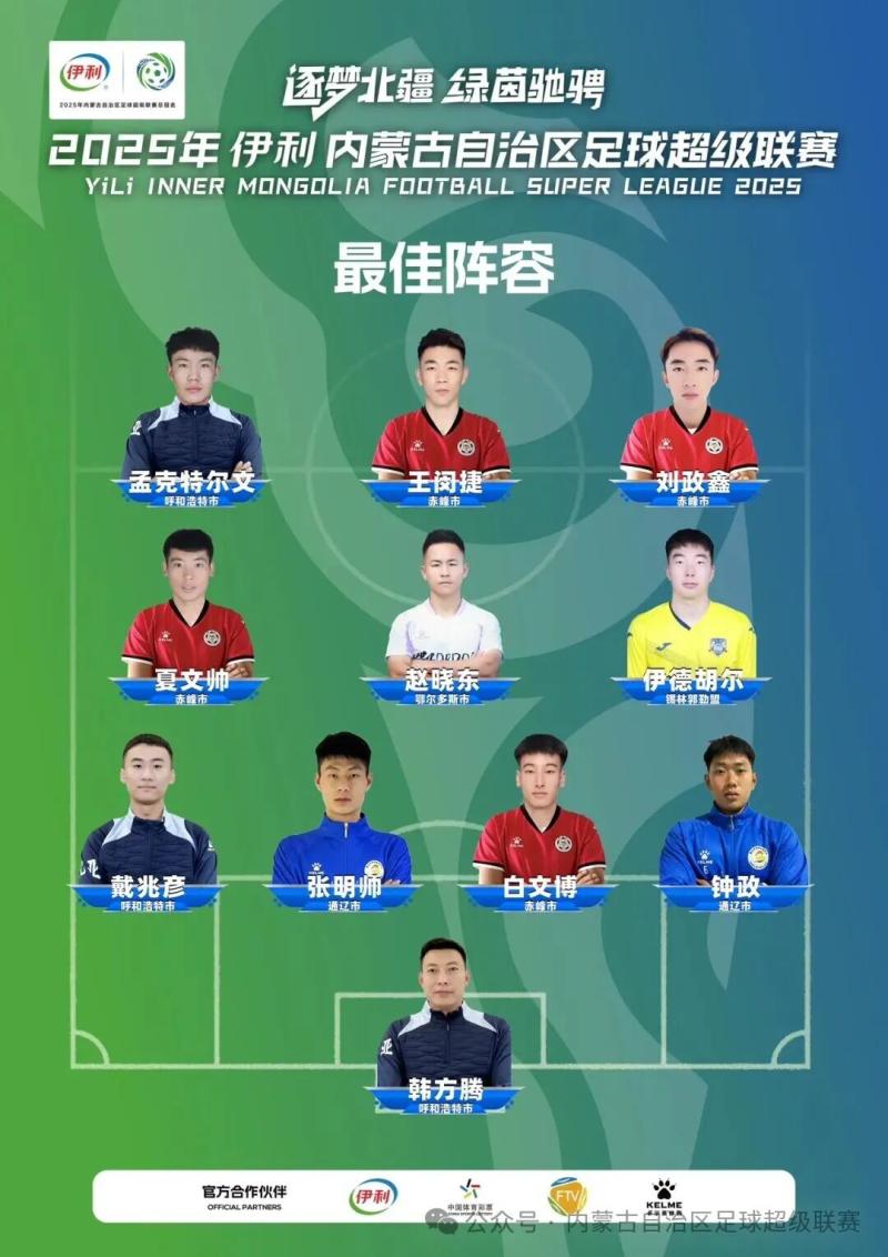 “逐梦北疆·绿茵驰骋”2025年伊利内蒙古自治区足球超级联赛历经2个多月的激烈角逐,经12支参赛代表队主教练投票,赛事组委会现正式公布2025年蒙超联赛最佳阵容如下: