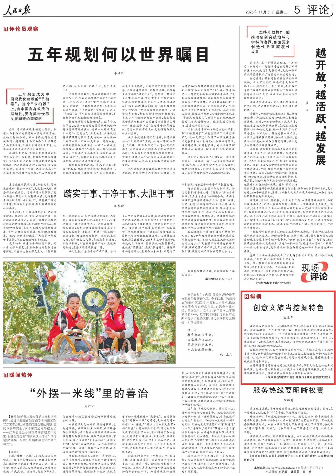 2025年11月5日,《人民日报》第5版刊发题为《创意文旅当挖掘特色》的评论,评论通过讲述不少地方将“瑞士卷”玩出了新花样,强调文旅创新的核心,在于唤醒资源的生命力。