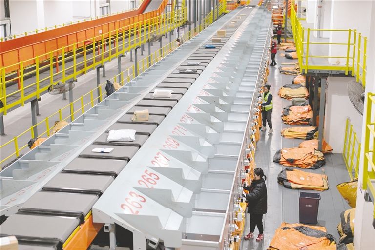 11月5日,在呼和浩特市的内蒙古圆通速递有限公司分拣中心内,工人在自动分拣设备的协助下进行分拣作业。1-9月,首府快递业务收入完成16.61亿元,同比增长9.20%。目前,邮政快递行业已进入业务旺季,各企业正开足马力保障市场需求。草原云·内蒙古新闻网记者 怀特乌勒斯 摄