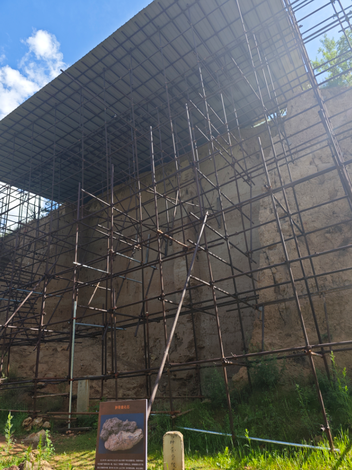 “这处考古剖面点高近16米,地层分为13层,虽然没有文字的记载,但是各历史时期的文化遗存、遗迹直观地展现在地层关系中,所以这处剖面也被称之为‘无字天书’。为保护考古剖面不被雨水侵蚀,工作人员搭建了临时保护棚。考古工作者曾在从下往上数的第二文化层中发现了人类用火的遗迹,在底部地层周边出土了肿骨鹿烧骨化石,这些遗迹遗物的出土反映了当时的远古先民已经掌握了自然用火的能力。”大窑遗址公园宣教部讲解员杨慧介绍。