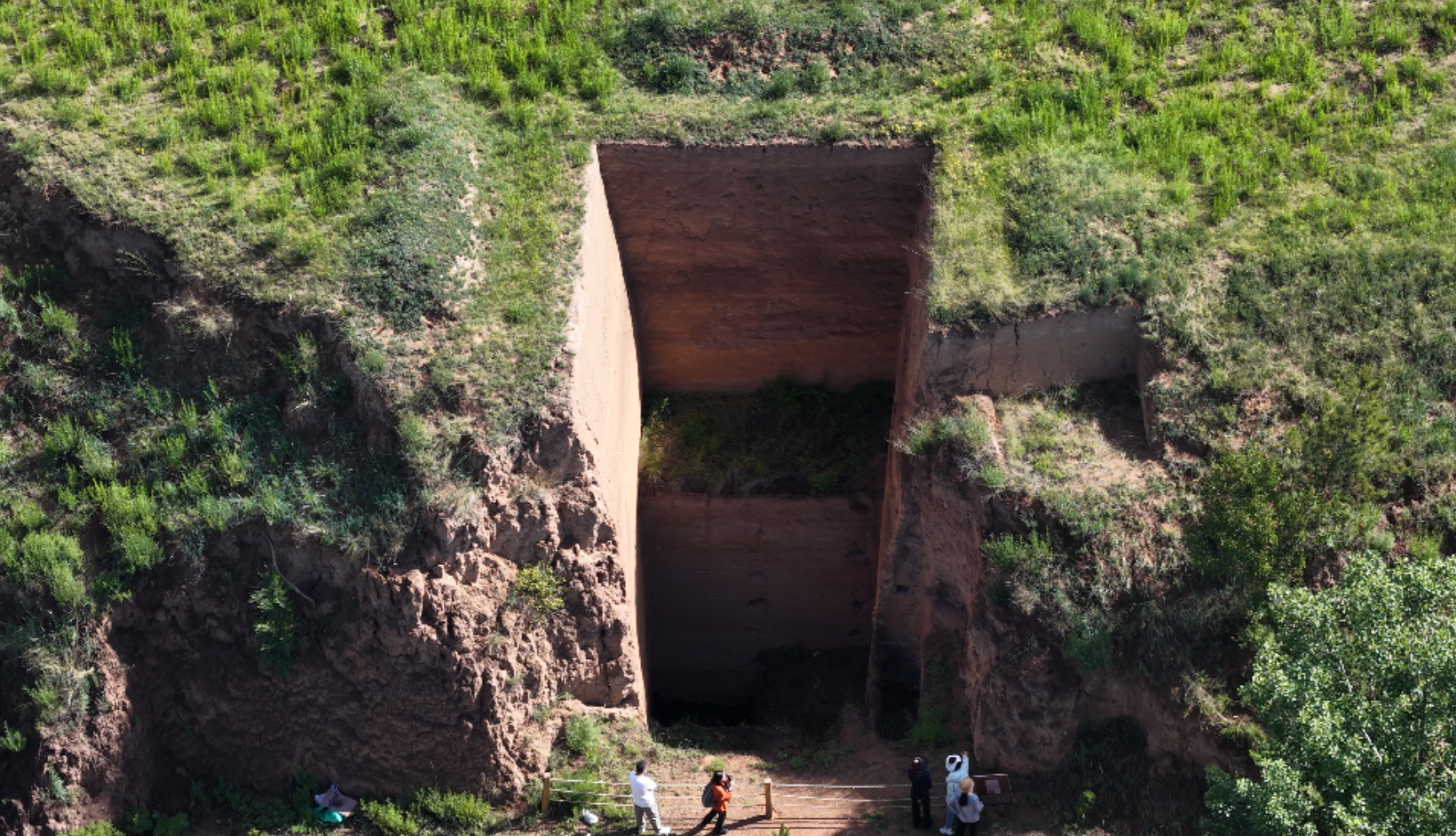 航拍大窑遗址四道沟东区2015年考古发掘剖面点。