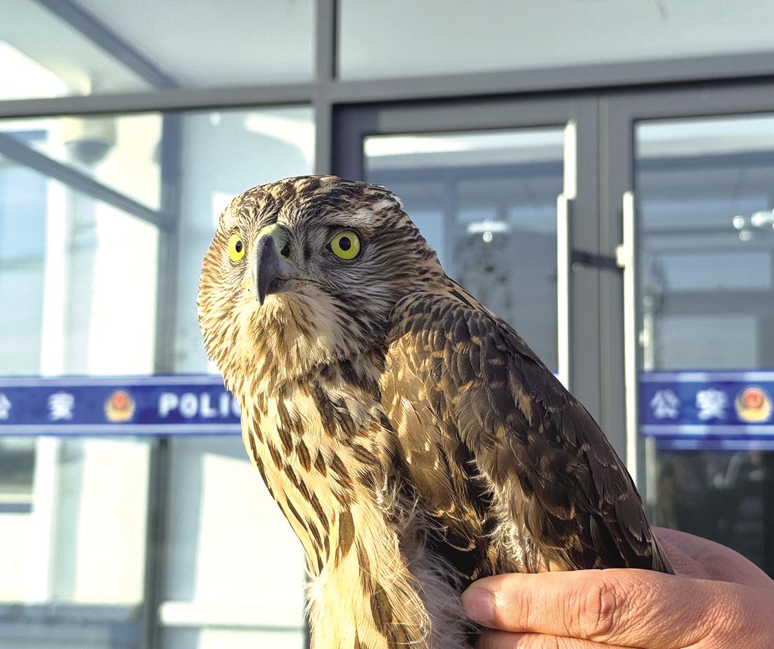 近日,包头边境管理支队巴音花边境派出所接到辖区牧民求助电话称,一只形似鹰类的大鸟落入自家院中,无法正常飞行。在牧民家中,民警初步观察发现,这只鸟通体覆盖灰褐色与白色相间的花纹,喙部呈尖锐弯钩状,黑色利爪修长且锋利,从外形判断属于猛禽范畴。经仔细检查,这只鸟体表无明显外伤,但每次尝试展开翅膀起飞时,均因力量不足无法离地。民警第一时间联系达茂旗林业和草原局专业工作人员。经工作人员辨认,确认该飞鸟为国家二级重点保护野生动物苍鹰,其无法飞行可能是因体力透支或轻微内伤导致。苍鹰被安全送往达茂旗林业和草原局接受救治,待其恢复健康、具备野外生存能力后适时放归自然。