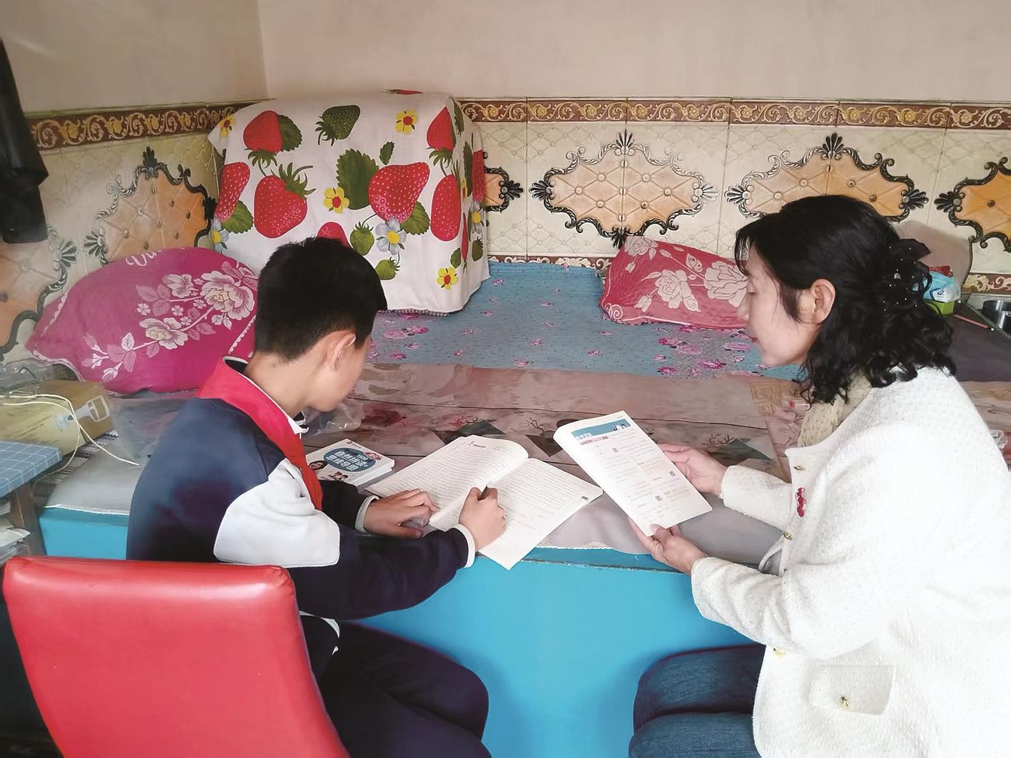 “爱心妈妈”郭靖辅导孩子学习。(图片由市妇联提供)