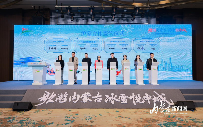 推介会精准解读冰雪资源,释放北疆文旅价值,紧扣上海及华东地区客源市场需求,全景展现内蒙古“四季皆可游”的全域文旅风貌。兴安盟、乌兰察布市、鄂尔多斯市、呼伦贝尔市等地分别与上海相关企业成功牵手,达成战略合作、文旅康养及客源互送等四项文旅合作,标志着沪蒙两地持续深化文旅合作,迈入精准对接、共赢发展的新阶段,进一步激活区域资源互补优势,构建起市场共建、品牌共塑的长效协作机制。
