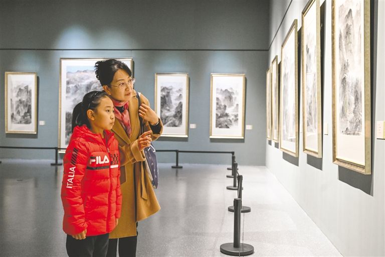 11月8日,观众在内蒙古博物院欣赏画作。当日,“守正创新 笔墨流金——靳尚谊、杨飞云、蒋威、刘万鸣绘画作品联展”在内蒙古博物院开展,展览汇聚4位艺术家的103幅艺术精品,题材涵盖人物肖像、风景、山水、花鸟,既展现古典油画的意象塑造,也呈现出中国文人水墨的写意精神,为北疆冬日注入深厚的人文艺术温度。展览将持续展出1个月。草原云·内蒙古新闻网记者 王磊 摄