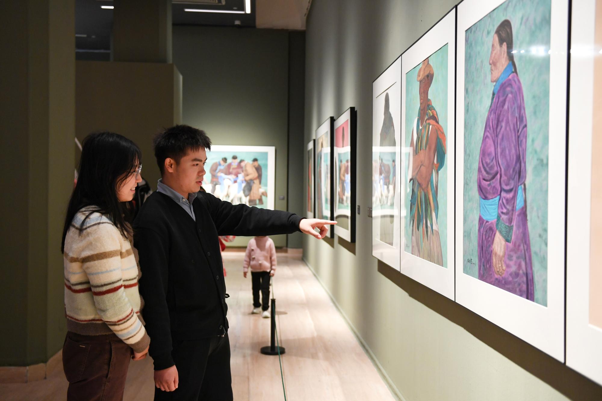 观众通过画作了解内蒙古的地域特色和文化。