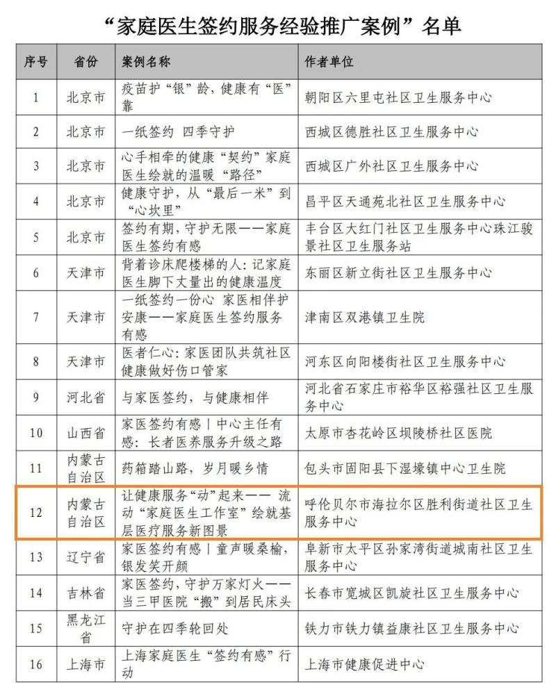 近日,中国社区卫生协会发布“2025年社区卫生文化年——家庭医生签约服务经验推广案例”,呼伦贝尔市海拉尔区胜利街道社区卫生服务中心《让健康服务“动”起来——流动“家庭医生工作室”绘就基层医疗服务新图景》入选,成为呼伦贝尔市唯一入选案例。