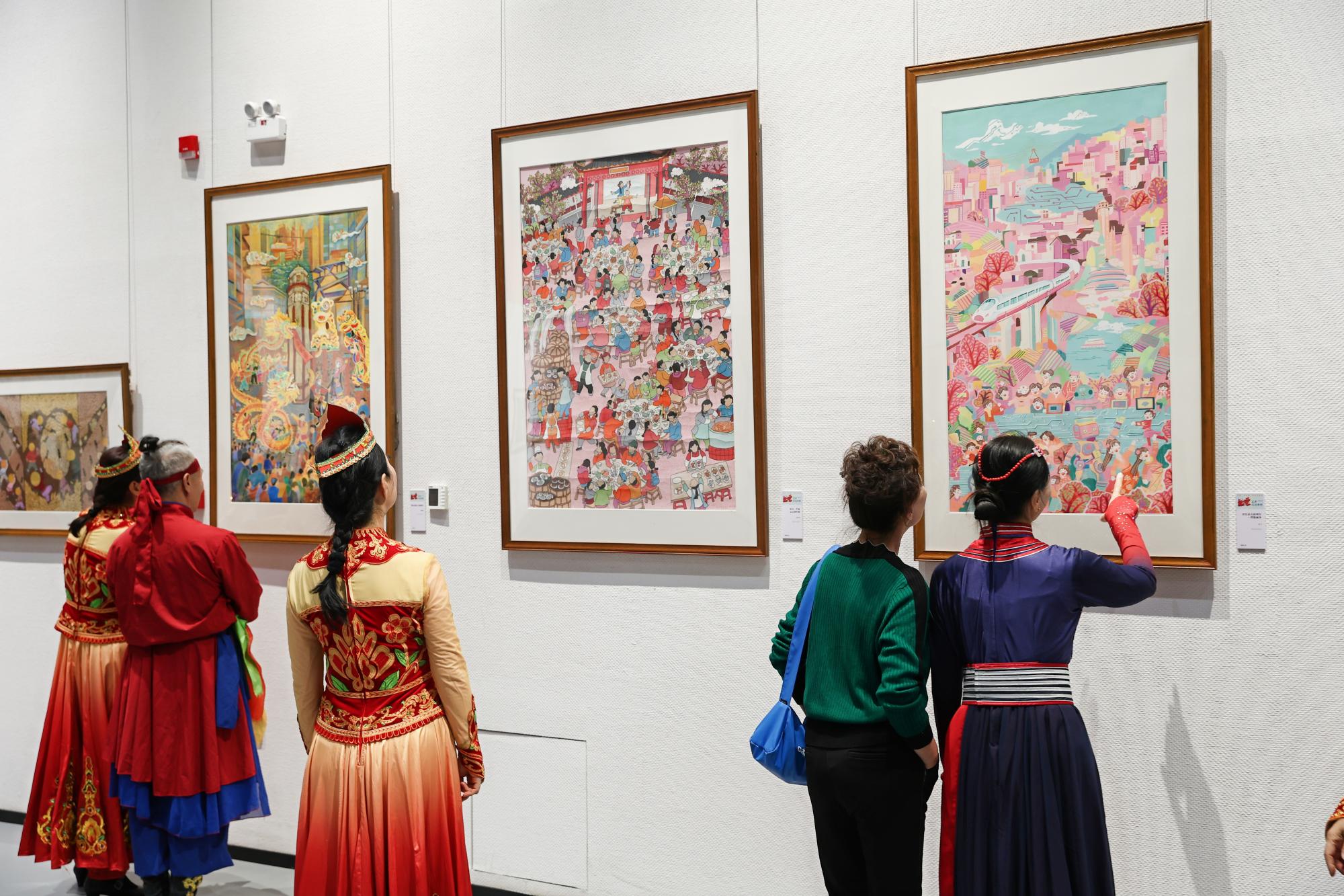 近日,为期一个月的“艺术点亮乡村——首届农民画省际交流活动”在内蒙古自治区文化馆举办,集中展出了来自内蒙古、浙江、山东、重庆、贵州、新疆六省区市的农民画,这些兼具艺术性、地域性的画作,以饱满浓烈的色彩、真挚质朴的笔触,定格了新时代乡村生产生活的火热场景,勾勒出中华文化多样包容、各地乡村同奔共富的图景。