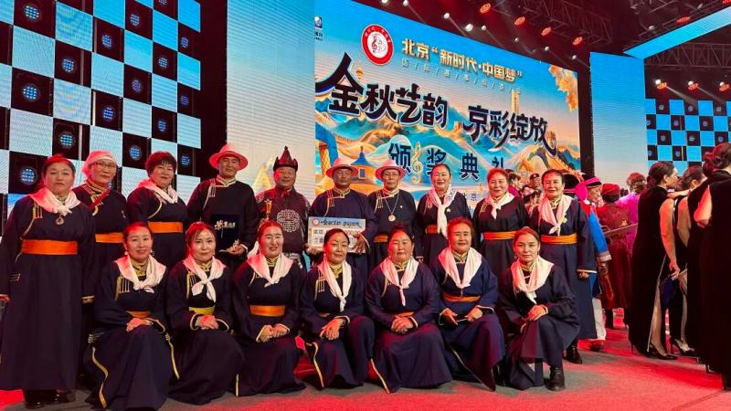 近日,新巴尔虎左旗长调协会在北京举办的2025“金秋艺韵・京彩绽放”全国文艺交流活动中荣获全国二等奖。该协会选送的17名成员,以经典长调民歌《赞歌》的深情演绎,让来自呼伦贝尔草原的古老艺术在首都舞台精彩绽放。