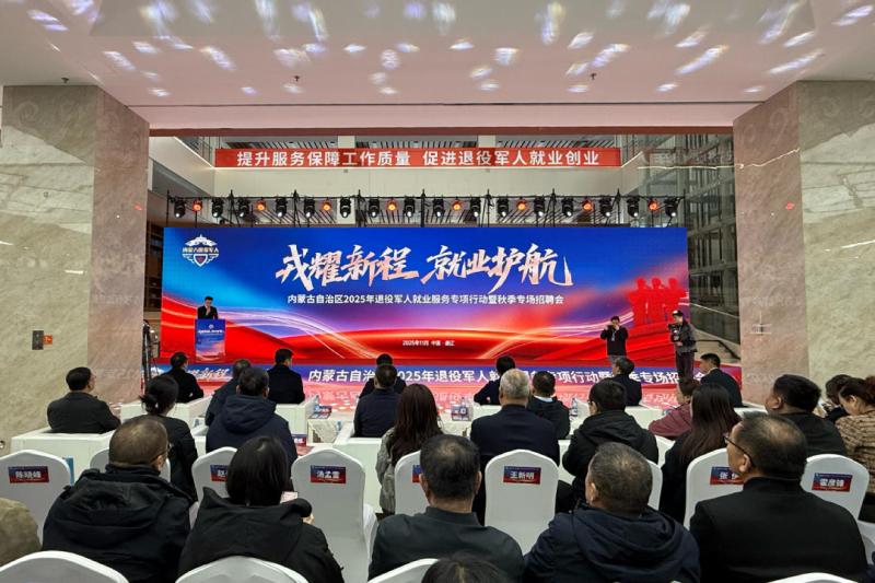 “戎耀新程 就业护航”内蒙古自治区2025年退役军人就业服务专项行动暨秋季专场招聘会现场。图片来源通达融媒微信公众号