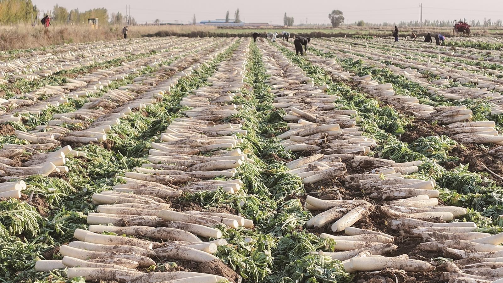 立冬刚过,万物收藏。五原县新公中镇旭日村2000亩麦后复种白萝卜迎来集中采收。“小麦收完种萝卜”的无缝种植模式,抢抓播后70~75天的最佳收获期,既实现土地“一茬接一茬”的高效利用,又通过订单农业打通产销链路,为当地农业提质增效注入新活力。
