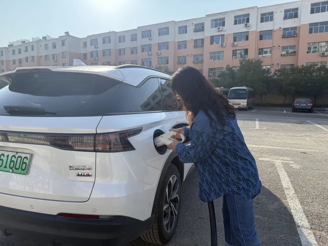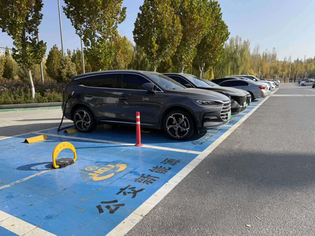 11月10日,记者来到海勃湾区新天地市场东侧的停车场,一个个充电桩整齐排列,一辆辆新能源车有序地在这里充电。