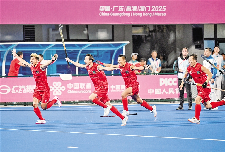 11月15日晚,广东云浮的夜空被欢呼声点燃。第十五届全国运动会男子曲棍球决赛场上,当内蒙古队第五轮23米球稳稳入网,全场瞬间沸腾——3∶2!内蒙古队力克老对手广东队,终结了长达32年的全运会冠军荒,将沉甸甸的金牌紧紧攥在手中。