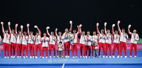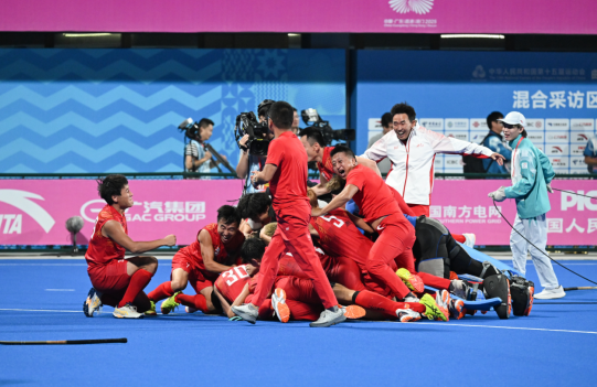 11月15日,历经多轮鏖战的第十五届全国运动会男子曲棍球冠军争夺战在广东省云浮曲棍球场落幕。内蒙古队与东道主广东队上演巅峰对决,整场比赛攻防交织、悬念拉满,常规时间内双方1:1战平,最终内蒙古队在23米球决胜中以3:2力克对手,时隔32年再夺全运会冠军。